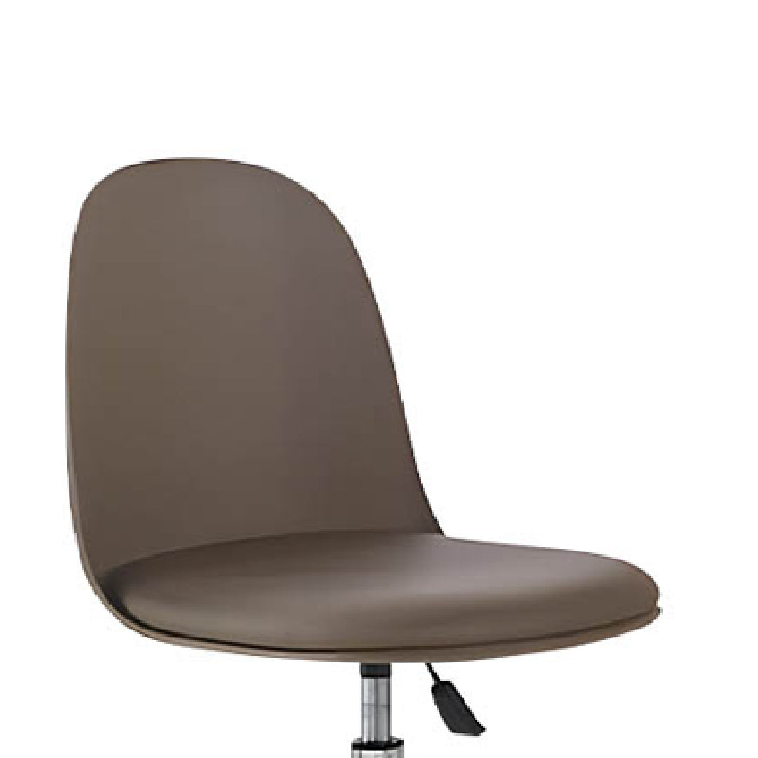 The Aprika Office Chair combines style and comfort with its sleek brown khaki PVC leather seat and durable PP body. Supported by a sturdy chrome leg base, it offers reliable stability and a modern look. Designed for practicality, it features an adjustable height mechanism to ensure optimal seating comfort for any workspace.