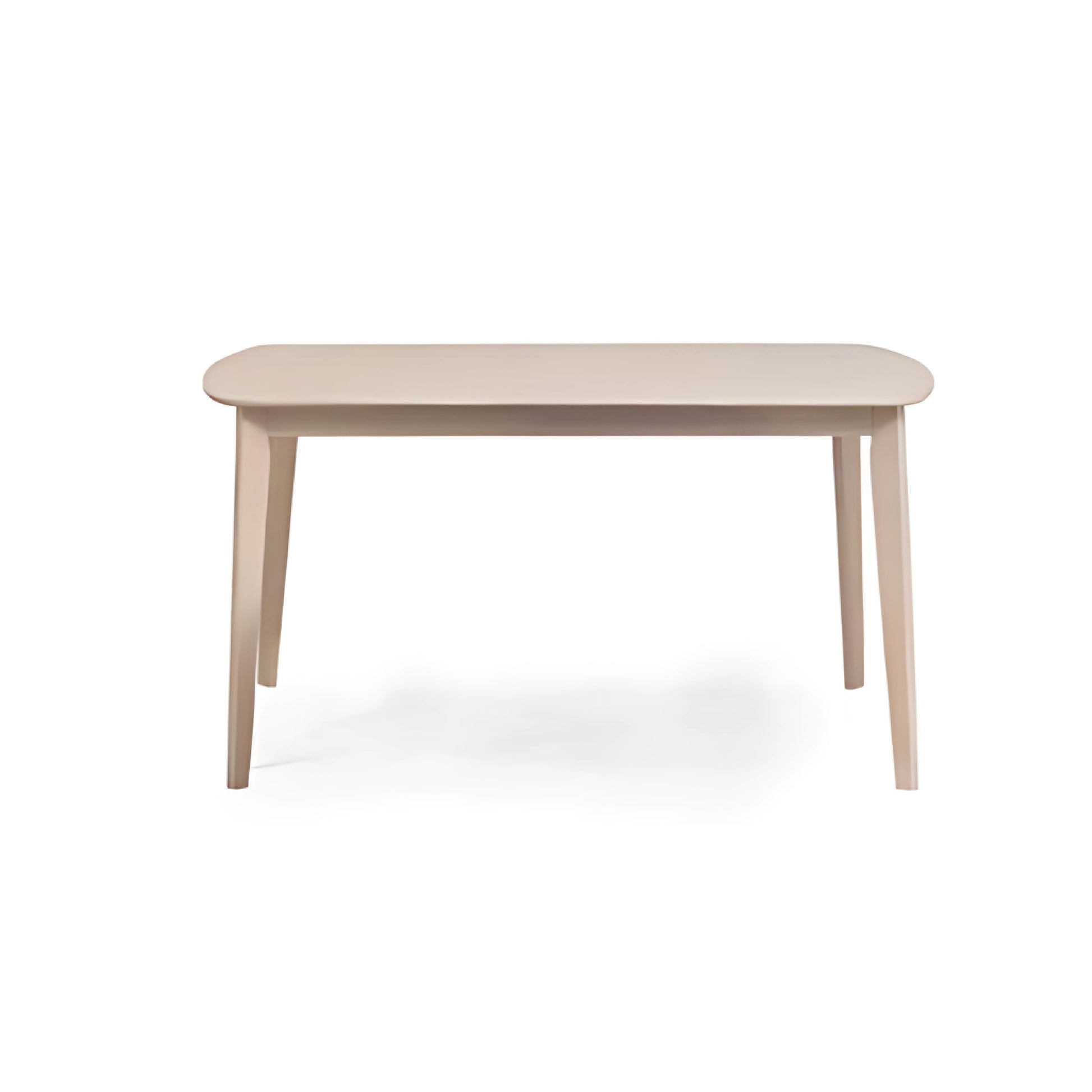 A simple dining table with a soft white-wash finish, offering a light and relaxed feel. Its balanced proportions make it a practical addition to kitchens, dining nooks, or casual gathering spaces.