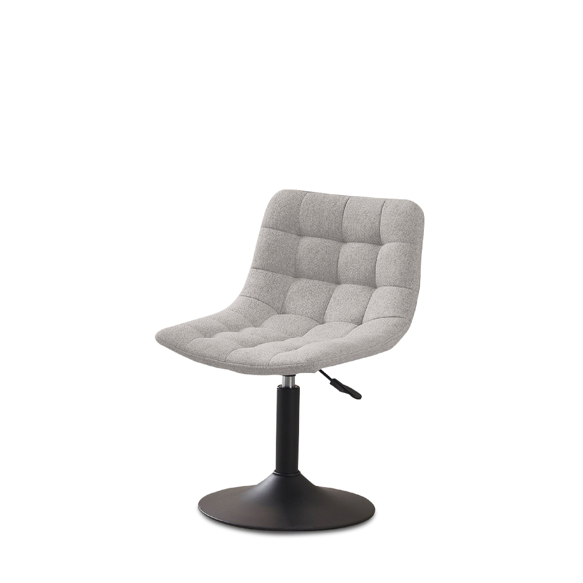 Silke Dressing Stool in Light Beige features a soft fabric seat with sleek black metal legs, complete with height adjustment and 360° swivel for effortless comfort and modern functionality.